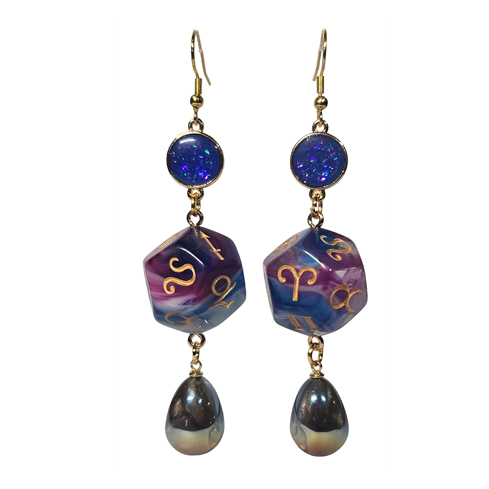 Embrace your cosmic luck with these playful Astrology Dice Earrings. Crafted from shimmering resin and highlighted with gold hardware, they combine the thrill of dice with the magic of astrology.