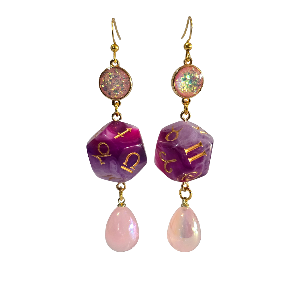 Embrace your cosmic luck with these playful Astrology Dice Earrings. Crafted from shimmering resin and highlighted with gold hardware, they combine the thrill of dice with the magic of astrology.
